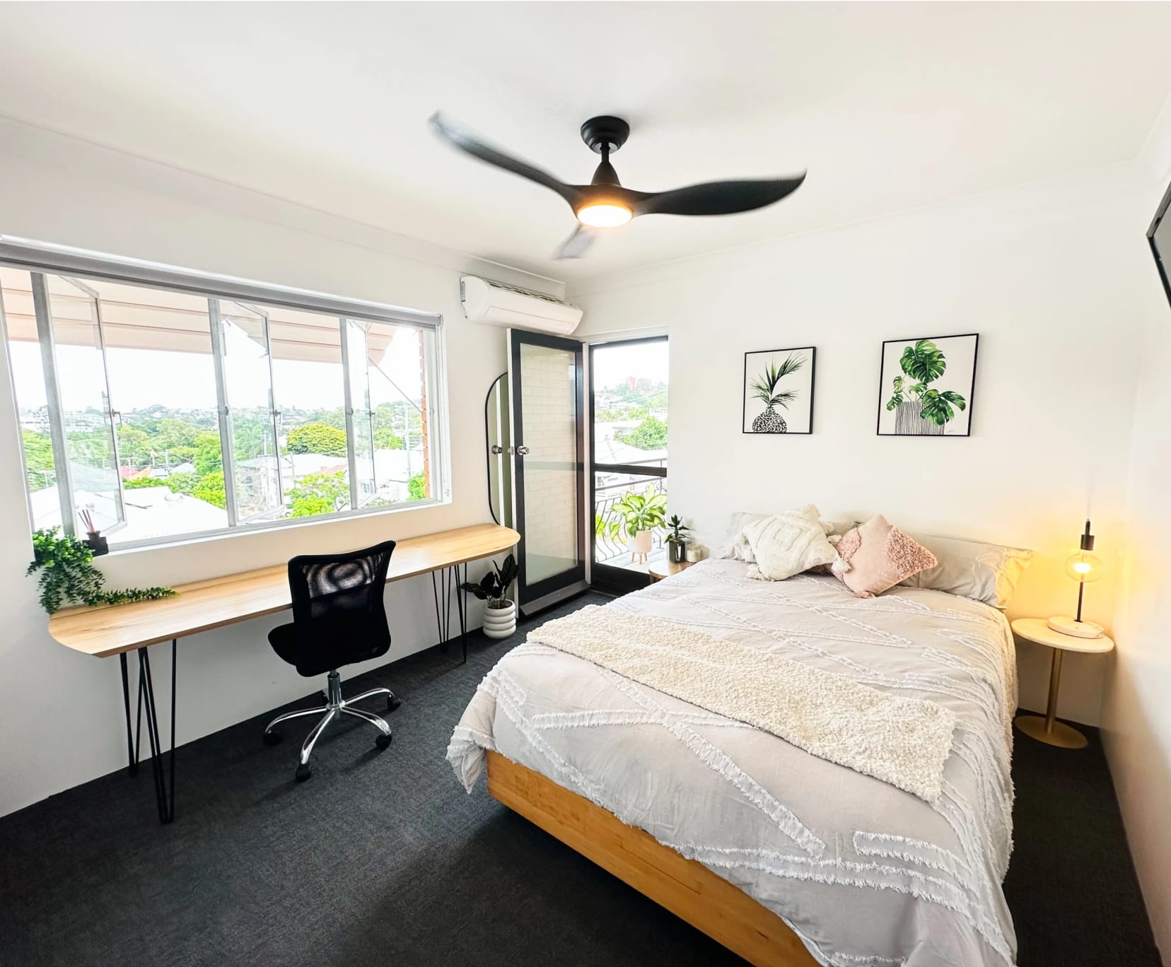 Enjoy a spacious (3.5m x 5.3m) private retreat with a balcony, air conditioning, and ample storage.